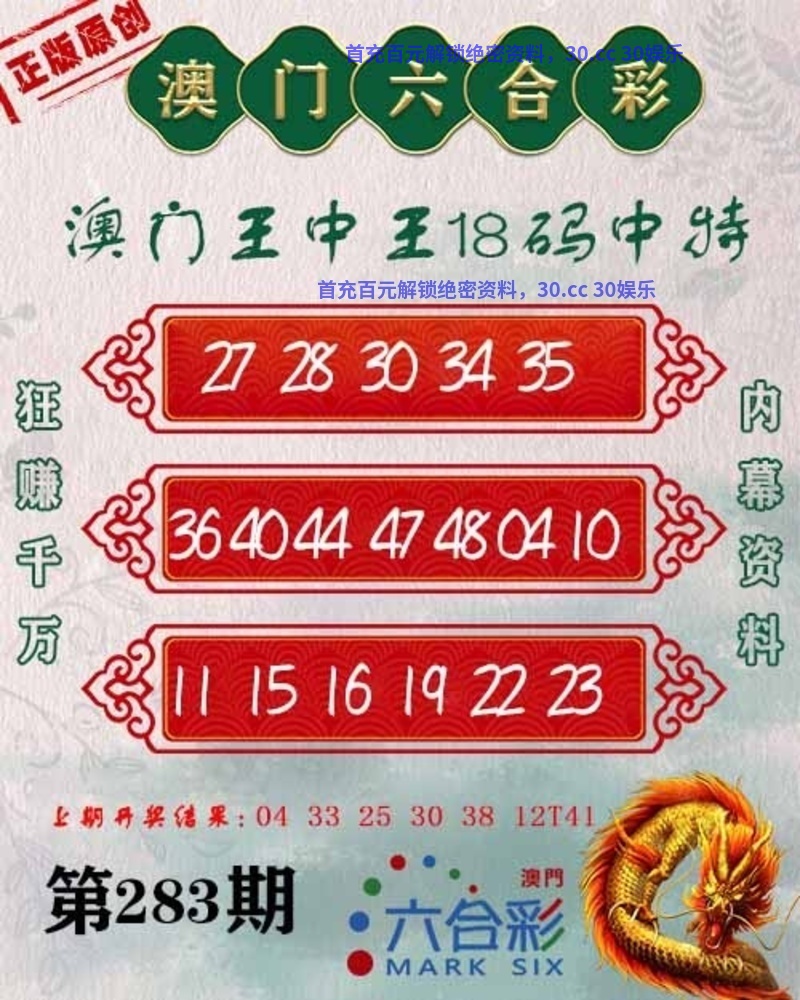 282期:绝杀✴️06.17.18.22.30.34✴️开:牛41中 |